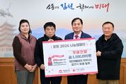 파이낸셜대구경북 기자 | 대한곡물협회 김천시지부(지부장 윤진채)에서는 26일 김천시청을 방문해 ‘희망2026 나눔캠페인’ 성금 300만 원을 기부했다. 윤진채 지부장은 "회원들의 뜻을 모아 이웃사랑과 나눔을 실천하는 ‘희망2026 나눔캠페인’에 기부할 수 있어 매우 뜻깊게 생각한다. 앞으로도 지역사회 발전에 기여할 수 있도록 노력하겠다.”라고 전했다. 배낙호 김천시장은 “윤진채 지부장님과 회원님의 따뜻한 나눔 활동에 감사드린다. 지역사회의 연대와 나눔이 김천시가 지속적인 발전을 이어가는 원동력이 된다.”라고 말했다. 대한곡물협회는 양곡을 도정하는 사업자와 양곡을 보관하는 사업자들을 대표하는 비영리 사단법인으로, 김천시지부는 10명의 회원으로 운영되고 있다. [뉴스출처 : 경상북도 김천시]