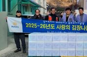 파이낸셜대구경북 기자 | 봉화로타리클럽(회장 원준석)은 11월 25일 (사)봉화군종합자원봉사센터(이사장 김병남)에 김장김치 50박스(150kg)을 전달했다. 이번 기탁은 겨울철을 앞두고 지역 내 취약계층과 소외이웃을 지원하기 위하여 마련됐다. 이날 김장 나누기 봉사에서는 봉화로타리클럽 회원 40여명이 참여한 가운데 재료 손질부터 절임, 양념 버무리기, 포장까지 직접 진행했으며, 준비된 김장김치는 거동불편 어르신 등 돌봄이 필요한 가구에 전달될 예정이다. 원준석 봉화로타리클럽 회장은 “추운 겨울을 대비해 도움이 필요한 분들에게 작은 힘이 되고자 회원들과 정성을 모았으며, 앞으로도 지역과 함께하는 나눔활동을 이어가겠다”고 밝혔다. 김병남 (사)봉화군종합자원봉사센터 이사장은 “정성을 담아 김장을 준비해주신 봉화로타리클럽 회원들게 감사드리며, 도움이 필요한 이웃들에게 전달해 드리겠다”고 전했다. [뉴스출처 : 봉화로타리클럽]