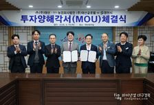 파이낸셜대구경북 김유신 기자 | 영천시는 19일 시청 영상회의실에서 ㈜태산과 농업회사법인 ㈜태산글로벌과 220억원 규모의 투자협약(MOU)을 체결했다. 협약식에는 최기문 영천시장, 허광옥 ㈜태산·농업회사법인 ㈜태산글로벌 대표이사 등 관계자들이 참석해 성공적인 사업 추진을 위한 상호 협력을 약속했다. 이번 협약에 따라 ㈜태산과 ㈜태산글로벌은 영천시 금호일반산업단지 내 약 5,500평 부지에 총 220억원을 투자해 앙금 및 베이커리 제품 생산라인을 구축할 계획이다. ㈜태산은 1994년 설립된 앙금 전문 제조기업으로, 제과.제빵용 앙금 제품을 중심으로 다양한 식품 소재를 생산하며 국내 식품기업과 프랜차이즈에 공급하고 있다. 또한 일본과 미국 등 해외시장에도 제품을 수출하며 사업을 확대하고 있다. 농업회사법인 ㈜태산글로벌은 2023년 설립된 기업으로, 글로벌 시장 확대와 브랜드 사업 강화를 목표로 디저트 브랜드 ‘알렛(ALLET)’을 선보이며 모찌 등 다양한 제품 개발을 통해 사업 기반을 확장하고 있다. 영천시는 이번 투자협약이 원활히 추진될 수 있도록 행정적 지원에 적극 나설 계획이며, 이번