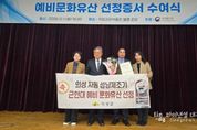 파이낸셜대구경북 기자 | 의성군은 의성자동성냥제조기(의성성냥공장 윤전기)가 지난 12월 1일 국립고궁박물관에서 열린 ‘예비문화유산 선정증서 수여식’에서 경상북도에서는 유일하게 예비문화유산 선정증서를 받았다고 밝혔다. 이날 행사에는 의성군 관광복지국장을 비롯한 관계자 5명이 참석해 국가유산청장 및 주요 외빈과 환담을 나누고 선정증서 수여식과 예비문화유산 사진전 관람 등 공식 일정에 함께했다. 특히 이어진 학술대회에서 의성군은 자동 성냥 제조기의 역사적·기술적 가치와 향후 보존 방향을 주제로 발표를 진행해 타 지자체 및 관련 기관 관계자들로부터 큰 관심과 호응을 얻으며 의성성냥공장 재생 사업을 널리 알리는 계기가 됐다. 참석자들은 이번 수여식을 통해 각 예비문화유산의 가치와 보존 방향을 공유하고, 앞으로의 연구·활용 방안을 논의했으며 미래 세대에게 전승해야 할 문화자원으로서 보존과 계승을 위해 상호 협력을 다짐했다. 김주수 의성군수는 “이번 예비문화유산 선정은 윤전기가 단순한 산업기계를 넘어 미래 문화유산으로서 잠재적 가치를 공식적으로 인정받은 뜻깊은 성과”라며 “체계적 보존과 활용을 통해 의성의 근