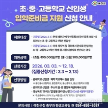 예천군, 2026년 초·중·고 신입생 입학준비금 지원 사업 추진