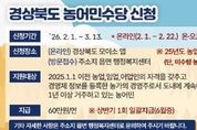 파이낸셜대구경북 김유신 기자 | 성주군은 농어업·농어촌의 공익적 가치를 보전하고 농어민의 소득 안정을 도모하기 위해 2026년도 농어민수당 신청 접수를 실시한다. 이번 농어민수당 신청은 2026년 2월 1일부터 3월 13일까지 진행되며, 온라인과 오프라인 방식으로 병행 접수한다. 온라인 신청은 2월 1일부터 2월 22일까지 경상북도 공공서비스 플랫폼인 ‘모이소(Moiso)’ 앱을 통해 가능하며, 방문 신청은 2월 23일부터 3월 13일까지 주소지 읍·면 행정복지센터에서 접수할 수 있다. 신청자는 신청 기간 내 편리한 방법을 선택하여 신청하면 된다. 신청 대상은 2024. 12. 31일까지 농어업경영체 등록을 마치고 같은 날(2024. 12. 31.)까지 경북도 내에 주민등록을 두고 신청일 기준 1년 이상 계속 거주하면서 실제로 농업·임업·어업에 종사하는 경영주이다. 다만, 농어업 외 소득이 일정 기준을 초과하거나 보조금 부정 수급 이력이 있는 경우 등은 관련 규정에 따라 지급 대상에서 제외될 수 있다. 경상북도 농어민수당은 농가당 연 60만 원이 지급되며, 자격 요건 검