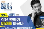 파이낸셜대구경북 이지원 기자 | 울진군은 오는 10월 16일 오후 5시 후포면 울진문화예술회관에서 제33회 울진군 목요특강을 개최한다. 이번 특강은 방송인 서경석을 초청하여‘작은 변화가 미래를 바꾼다’라는 주제로 강연이 진행된다. 오랜 기간 방송 활동을 통해 국민과 소통하며 따뜻하고 유머러스한 화법으로 많은 사랑을 받아온 서경석 강사는 이번 강연에서 일상 속 작은 변화와 실천이 개인의 성장과 밝은 미래로 이어진다는 메시지를 군민들에게 전할 예정이다. 울진군 목요특강은 사전 신청 없이 무료로 관람할 수 있으며, 강연 후 현장에서 제공되는 만족도 조사 참여자와 사전질문 신청자 중 추첨을 통해 소정의 경품을 지급할 예정이다. 사전질문은 포스터에 안내된 QR코드를 통해 10월 1일부터 10일까지 신청할 수 있으며, 채택된 질문은 강연 중 서경석 강사가 직접 답변할 예정이다. 손병복 울진군수는 “이번 특강이 군민들에게 도전과 변화를 두려워하지 않는 긍정적인 메시지를 전할 것으로 기대한다”라며“많은 군민께서 함께하셔서 공감하고 웃으며, 미래를 준비하는 뜻깊은 시간이 되시길 바란다”라고 말했다. &