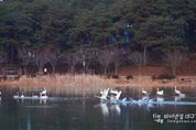 파이낸셜대구경북 기자 | 맑게 갠 하늘 아래 울진군 연호공원에서 겨울 철새 고니가 힘차게 날아오르고 있다. 드넓은 연못을 품고 있는 연호공원과 전국 최대 생태경관보전지역인 왕피천은 매년 고니를 비롯한 다양한 철새들이 찾는 울진의 대표적인 생태 휴식처로, 자연과 사람이 공존하는 공간이다. 한겨울, 물살을 가르며 비상하는 고니의 모습이 고요한 연호공원에 생동감을 더하며 대한민국의 숨결을 고스란히 전하고 있다. 한편, 고니는 북반구 시베리아에서 번식하며, 겨울을 보내기 위해 10월에서 이듬해 3월까지 우리나라에 주로 머문다. [뉴스출처 : 경상북도 울진군]
