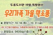 파이낸셜대구경북 김유신 기자 | 대구두류도서관은 10월 18일부터 31일까지 어린이실에서 선착순 40가족을 대상으로 책과 소풍 물품을 함께 대여하면 머리띠와 퍼즐을 증정하는‘우리가족 가을 책소풍’행사를 실시한다. 참여를 원하는 가족은 어린이실에 방문하여 도서관 회원증을 제시하고 책과 돗자리, 간이의자, 미니테이블, 독후활동지, 보드게임 등 소풍에 필요한 물품을 대여하고 당일 오후 5시까지 반납하면 된다. 기타 자세한 내용은 도서관 누리집 또는 어린이실로 문의하면 된다. [뉴스출처 : 대구시교육청]