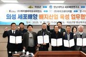 파이낸셜대구경북 김유신 기자 | 의성군은 11월 18일 영남대학교 세포배양연구소(소장 최인호), ㈜케이셀바이오사이언스(대표 강기용), ㈜마이크로디지탈(대표 김경남), ㈜티리보스(대표 윤형호)와 함께 세포배양 배지 산업 육성을 위한 5자 업무협약(MOU)을 체결했다. 이번 협약은 지난해 의성군·영남대학교 세포배양연구소·㈜마이크로디지탈·㈜티리보스 간에 체결된 세포배양산업 육성 협력체계를 한 단계 확대한 것이다. 이를 통해 기존 장비·원부자재 중심의 협력 구조에 세포배양 배지 핵심 소재 연구 역량이 더해져, 세포배양산업 전체를 아우르는 협력체계가 완성될 것으로 기대된다. 협약에 참여한 5개 기관은 향후 세포배양 배지 원료 및 공정 기술의 국산화, 공동 연구개발 과제 추진, 해외 의존도가 높은 바이오 부품의 대체 기술 확보 및 현장 맞춤형 전문인력 양성 과정을 운영하기로 뜻을 모았다. 특히 이번에 새롭게 참여한 ㈜케이셀바이오사이언스는 분말형 세포배양 배지 개발 및 제조기술을 보유한 전문기업으로, 대한민국 산업대상 퍼스트 클래스 대상을 2년 연속 수상하는 등 세포배양 배지 제조기술 개발 및 상용화에 기여하