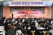 파이낸셜대구경북 김유신 기자 | 문경문화원은 1월 5일 문경실내체육관에서 기관·단체장 등 400여 명이 참석한 가운데 ‘2026 문경시 신년하례회’를 개최했다. 신년하례회는 매년 새해를 맞아 관내 기관·단체장이 한자리에 모여 문경시 발전과 시민의 안녕을 기원하는 행사로, 올해는 역동적인 에너지를 상징하는 병오년(丙午年), ‘붉은 말’의 해를 맞아 문경시가 힘차게 도약하는 한 해가 되기를 소망하는 의미를 담아 마련됐다. 이번 행사는 홍보대사 위촉식을 시작으로 상견례, 신년사, 축하떡 커팅, 떡국 나눔 순으로 진행됐다. 특히 이날 ‘미스터트롯2 진(眞)’ 가수 안성훈 씨를 문경시 홍보대사로 위촉해 문경의 매력과 가치를 전국에 널리 알리는 데 협력하기로 했으며 위촉식 이후 축하공연이 이어져 참석자들에게 감동을 선사했다. 행사를 풍성하게 장식한 문화공연은 가은초 채지산 양이 식전 공연으로 막을 올렸으며, 시립청소년무용단과 시립합창단 공연이 펼쳐졌고 마지막으로 제3회 문경트롯가요제 인기상 수상자이자 2025년 전국노래자랑 연말 결산 우수상을 받은 장혜진 양이 무대에 올라 새해 분위기를 한층 고조시켰다. &n