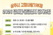 파이낸셜대구경북 김유신 기자 | 상주시는 2026년 고향사랑기부제에 참여할 답례품 공급업체를 오는 21일까지 공개모집 한다. 모집대상은 상주시에 사업장을 두고 있으며 답례품으로 제공 가능한 품목을 안정적으로 생산·배송 할 수 있는 업체이다. 모집분야는 ▲농·축·임산물, ▲가공식품·제조물품, ▲관광·서비스이다. 참여를 희망하는 업체는 11월 19일부터 21일까지 상주시청 세정과로 신청 서류를 방문 제출하고 서류심사와 답례품선정위원회 심의를 거쳐 최종 결정된다. 상주시는 현재 상주곶감, 상주화폐, 명실상감한우 선물 세트, 명실상주몰 모바일 상품권을 비롯하여 사과, 배 등 농·특산품과 낙동강자전거이야기촌 하늘자전거 체험이용권 등 22개 업체 33종의 답례품을 제공하고 있으며 이번 공모를 통해 상주시의 특색있는 다양한 답례품을 발굴하여 기부자에게 선택의 폭을 확대할 예정이다. 강영석 상주시장은 “상주시에 고향사랑기부금을 기부해 주신 분들께 고향의 우수 답례품을 제공하여 감사의 마음을 전하고, 지역경제 활성화에 보탬이 되도록 하겠다”고 말했다. [뉴스출처 : 경상북도 상주시]