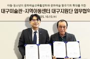 파이낸셜대구경북 김유신 기자 | 대구문화예술진흥원 대구미술관과 지역아동센터대구지원단(단장 이상열)은 지난 10월 15일 대구미술관에서 아동·청소년 문화예술교육 활성화와 문화예술 향유 기회 확대를 위한 업무협약을 체결했다. 이번 협약식에는 노중기 대구미술관장과 이상열 지역아동센터대구지원단장을 비롯해 양 기관 관계자들이 참석했으며, 지역 아동·청소년이 예술을 통해 성장할 수 있는 지속 가능한 협력체계 구축을 약속했다. 협약에 따라 양 기관은 ▲대구미술관 전시 및 교육 프로그램에 ‘지역아동센터’와 ‘대구형 방과 후 틈새돌봄사업’ 아동·청소년의 참여 지원 및 독려 ▲아동·청소년 대상 맞춤형 문화예술교육 프로그램 공동 기획 및 운영 ▲프로그램 참여 효과 제고를 위한 자료 공유 및 교육 정보 교류 ▲기타 상호 발전을 위한 교육 관련 협력 등 다양한 분야에서 상호 협력하기로 했다. 특히 이번 협약을 계기로 지역아동센터 종사자 교사를 대상으로 한 전문교육 워크숍을 오는 10월 21일 대구미술관에서 진행한다. 프로그램은 열린 교육 ‘샤이닝 트레일즈’와 연계하여 현대미술의 새로운 접근 방식을 모색하고, 자연·빛·