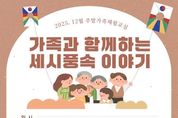 파이낸셜대구경북 김유신 기자 | 대구교육박물관은 오는 12월 20일 오전 10시와 오후 2시, 박물관 행복공감실에서 총 2회에 걸쳐 운영되는 12월 주말가족체험교실 ‘가족과 함께 하는 세시풍속 이야기’에 참여할 초등학생을 포함한 16가족(회차별 8가족)을 모집한다. 이번 체험교실은 세시풍속을 주제로 한 탐구 및 표현 활동을 통해 역사적 지식을 함양하고, 역사를 중심으로 미술·실과 등 다양한 교과와의 융합 활동을 통해 학생들의 창의력을 높이고자 마련됐다. 주요 활동은 ▲세시풍속 개념 탐구하기, ▲2026 세시풍속 달력 만들기, ▲세시풍속 카드 놀이 및 보드게임, ▲전시물 탐방 등으로, 가족 간 소통을 촉진하고, 세시풍속의 의미를 자연스럽게 이해할 수 있는 다양한 체험이 진행된다. 박물관은 12월 5일부터 누리집을 통해 참여 신청을 접수하며, 기타 자세한 사항은 교육학예부로 문의하면 된다. 홍진근 관장은 “이번 프로그램을 통해 가족들이 함께 세시풍속의 의미를 배우고 체험하면서, 일상의 쉼 속에서 역사와 문화의 가치를 느끼시길 바란다”며, “앞으로도 박물관이 지역사회와 소통하며 역사와 문화를 확산하는