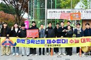 파이낸셜대구경북 김유신 기자 | 11월 13일 이른 아침, 성주고등학교 정문 앞에는 특별한 응원의 손길이 모였다. (재)성주군별고을장학회는 2026학년도 대학수학능력시험을 앞둔 지역 수험생들을 격려하기 위해 현장 응원에 나섰다. 이날 오전 7시 30분부터 시작된 격려행사에는 이병환 성주군수(장학회 이사장)를 비롯해 장학회 임원진, 성주군의회 이화숙 부의장, 김성우 의원 그리고 유관기관 및 교육관계자 등 50여명이 참석했다. 특히, 성주고 후배 학생 20여명이 자발적으로 선배들을 응원하기 위해 함께 모여 훈훈한 감동을 더했다. 응원단은 시험장에 입실하는 수험생들을 향해 현수막과 피켓을 들고 응원의 메시지를 전했으며 응원단의 진심 어린 응원에 긴장된 표정이던 수험생들도 미소를 지으며 힘찬 발걸음을 내디뎠다. 올해 장학회는 수능을 앞둔 11월 한 달을 ‘수험생 응원의 달’로 정하고 다각도로 지원에 나섰다. 관내 고등학교 3학년 전체에게 시험 준비에 도움이 될만한 대용량 보조배터리를 배부했으며, 성주읍, 선남면 등 주요 소재지 6곳에는 격려 현수막을 설치해 지역사회 전체가 수험생을 응원하는 분위기를 조성했다. &nbs