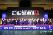 파이낸셜대구경북 강대산 기자 | 경주시가 2025년 APEC 정상회의 개막을 한 달 앞두고 시민의 힘을 하나로 모아 성공개최 의지를 다졌다. 시는 30일 경주실내체육관에서 ‘2025년 APEC 정상회의 성공개최 범시민실천결의대회’를 성황리에 개최했다고 밝혔다. 이번 행사에는 APEC 범시도민지원협의회(공동회장 박몽룡·이상걸) 소속 회원을 비롯해 유관기관, 시민단체, 자원봉사자 등 경주시민 3천여 명이 참석해 시민과 함께하는 APEC의 진정한 의미를 되새겼다. 특히 주낙영 경주시장을 비롯해 김석기 국회 외교통일위원장, 이동협 경주시의장, 최병준 경북도의회 부의장을 비롯해 시·도의원 전원이 참석해 시민과 함께 손님맞이 실천 결의를 다지고 성공 개최를 향한 열기를 더했다. 행사장 내부에는 시민단체들이 자체 제작한 손님맞이 실천 결의 현수막이 곳곳에 걸려 있어, APEC 성공개최를 향한 시민들의 뜨거운 참여 의지를 생생하게 보여주었다. 본행사에 앞서 참석자들은 ‘APEC 시민 10대 실천과제’를 함께 되새기며, 모든 시민이 APEC의 주인으로서 행동할 때 성숙한 시민의식과 지속가능한 경주를 만