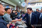 파이낸셜대구경북 김유신 기자 | 이재명 대통령은 25일 오후 한국항공우주산업(KAI)에서 열린 KF-21 양산 1호기 출고식에 참석한 뒤 경남 진주시에 위치한 진주중앙시장을 깜짝 방문해 민심을 청취했다. 진주중앙시장은 1884년 개장한 유서 깊은 전통시장으로, 진주 지역의 대표 상업 거점으로 자리하고 있다. 이재명 대통령은 후보 시절이던 지난해 5월에도 이곳을 방문한 바 있다. 상인들과 주민들은 예고 없이 깜짝 등장한 이재명 대통령을 환호와 박수로 맞이했다. 현장에서는 “이재명 대통령 최고!”, “사랑합니다”, "감사합니다", “멋있어요”, “고생 많으십니다” 등 다양한 응원의 목소리가 이어졌다. 이재명 대통령은 시민들과 일일이 눈을 맞추며 인사했고, 셀카 촬영에 응했다. 특히 아이들을 지나치지 않고 몇 살인지 묻는 등 세심하게 소통하며 함께 사진을 찍었다. 이재명 대통령은 시장 곳곳을 둘러보고, 상인들에게 장사가 잘되는지 묻는 등 현장의 목소리를 청취했다. 이재명 대통령은 상추와 애호박 등을 현금과 온누리상품권으로 구입했고, 귤과 꼬치전, 호떡, 엿, 딸기 등을 즉석에서 맛본 뒤 구입