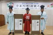 파이낸셜대구경북 기자 | 대설위 상주향교에서는 2025년 11월 20일 상주시 유림회관에서 그동안 잊혀 왔던 수호지례(授號之禮)를 성대하게 가졌다. 수호지례는 부모님이 지어주신 이름 대신 벗 간에 쉽게 부르는 다른 이름을 지어주는 의식으로, 상주향교 사회교육원장인 조재석(趙在石)님과 감사 조남진(曺南鎭)님이 대상이 됐다. 조재석 교육원장에게는 “미산(眉山)”이란 호(號)를, 조남진 장의에게는“서암(瑞菴)”이란 호를 권기봉 상주향교 경전반 강사께서 짓고 이 호(號)와 호설(號說)을 서예가인 소파 윤대영 님께서 족자에 글씨를 써 주신 것을 표구했다. 먼저, ‘미산(眉山)’은, 그 사람됨의 덕이 산처럼 숭고하고 안정되며, 그 재능이 눈썹처럼 빼어나고 아름다우며 속에 품는다는 뜻을 취하며, ‘서암(瑞菴)’은 상서로운 징조를 뜻하여 세상을 살아감에 있어, 말은 반드시 충실하고 신의가 있으며, 행실은 반드시 독실하고 공경하며, 덕을 쌓되 작은 것에서부터 쌓아, 높고 크게 이룬다는 뜻으로 김명희 전교는 호설 족자를 직접 수여하고 호풀이도 참석자들과 함께 했다. 예부터 사람이 태어나면 3개월째에 아