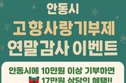 파이낸셜대구경북 김유신 기자 | 안동시는 연말정산 시즌을 맞아, 고향사랑기부제 참여자에게 감사의 뜻을 전하고 기부 문화를 확산하기 위해 12월 22일(월)까지 ‘안동시 고향사랑기부제 연말 감사 이벤트’를 진행한다고 밝혔다. 고향사랑기부제는 10만 원 기부 시 3만 원 상당의 답례품과 세액공제 혜택(10만 원까지 전액, 초과분 16.5%)을 받을 수 있는 제도다. 안동시는 여기에 더해, 연말 감사 이벤트 기간(12월 22일까지) 기부자 중 추첨을 통해 30명에게 안동 백진주 쌀 10kg을 추가로 증정할 예정이며, 당첨자는 12월 23일 문자로 개별 안내된다. 참여는 고향사랑e음 누리집 또는 농협은행 오프라인 창구를 통해 가능하다. 안동시는 이번 이벤트가 고향사랑기부제 참여 문화를 확산하고 지역경제 활성화와 기부자 만족도를 높이는 계기가 될 것으로 기대하고 있다. 특히 연말정산에 대한 관심이 높아지는 시기에 기부 혜택과 지역 특산품 선물을 동시에 받을 수 있어 참여가 한층 확대될 것으로 보인다. 안동시 관계자는 “올 한 해 안동을 응원해주신 모든 기부자께 깊이 감사드린다”며 “기부금은 시민의 삶의 질 향상과 지역발