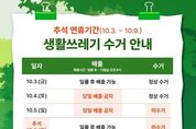 파이낸셜대구경북 이지원 기자 | 경산시는 추석 연휴기간 중 시민불편을 최소화하기 위해 9월 22일부터 10월 9일까지 “생활쓰레기 처리 종합대책”을 추진한다고 29일 밝혔다. 시는 추석 연휴 전까지 환경정비를 실시하여 배출된 쓰레기는 전량 수거 처리할 계획이다. 연휴 기간 중 시청 종합상황반과 읍‧면‧동 기동 청소반을 설치하고 쓰레기 수거 5개 권역 대행업체도 긴급운영반을 편성‧운영해 긴급한 쓰레기 민원을 신속히 처리하여 시민 불편이 발생하지 않도록 관리할 방침이다. 또한, 쓰레기 처리시설 및 수거 대행업체 휴무로 연휴 기간 중 10월 5일부터 10월 6일은 쓰레기 수거가 중단됨에 따라 이날 발생된 쓰레기는 가급적 배출을 자재하고 가정에 보관했다가 수거 전날에 배출해 줄 것을 당부했다. 특히, 추석 다음 날 쓰레기가 한꺼번에 몰려 배출될 것이 예상됨에 따라 쓰레기 수거 5개 업체에서 청소 인력과 장비를 총동원하여 쓰레기를 전량 수거‧처리할 예정이다. 시 관계자는 “추석 연휴가 개천절 및 한글날을 포함해 7일간 지속됨에 따라 쾌적하고 깨끗한 명절 분위기 조성을 위해 무단투기를 자재하고 각 가정에서도