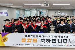 파이낸셜대구경북 김유신 기자 | 대구 중구는 지난 27일 중구 자원봉사센터에서 ‘2025년도 중구자원봉사대학(14기)·대학원(7기) 졸업식’을 개최했다. 2025 자원봉사대학(원)은 지난 8월 28일 입학식을 시작으로 총 13주 과정으로 진행됐으며, 자원봉사 의식 강화 등 기본 소양 교육과 심폐소생술·응급처치법 등 전문과정을 대학에서 운영했다. 대학원 과정에서는 ‘푸드테라피’를 주제로 한 심화 과정이 마련됐다. 올해는 대학 42명, 대학원 20명 등 총 62명이 졸업장을 받았다. 중구자원봉사대학은 2012년 첫 기수 69명을 시작으로 2025년까지 총 691명의 졸업생을 배출했다. 졸업생들은 지역의 자원봉사 협력체계를 강화하는 핵심 인력으로 활동하며 다양한 자원봉사 현장에서 역할을 이어갈 예정이다. 류규하 중구청장은 “그간의 교육과정을 통해 쌓은 지식과 마음을 바탕으로 중구의 자원봉사를 이끌어 주시길 바란다”며 “중구청도 자원봉사 협력체계 구축과 기반 확장을 위해 지속해서 지원하겠다”고 말했다. [뉴스출처 : 대구시중구]