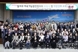 파이낸셜대구경북 김유신 기자 | 대구 달서구는 2일 '달서구 지속가능발전협의회 위원 위촉식 및 교육'을 개최하며 지역 지속가능발전을 위한 민·관 협력의 새로운 발걸음을 내딛었다. 달서구는 지속가능발전 목표 실현을 위해 민·관 협력 네트워크를 강화하고 주민 참여를 확대하고자 지속가능발전협의회를 출범했다. 위촉식과 함께 진행된 이번 교육은 협의회 활동의 방향성과 전문성을 강화하기 위한 자리로 마련됐다. 협의회는 공개모집을 통해 지역 발전에 적극 참여하고자 하는 주민 100여 명으로 구성됐으며, 앞으로 2년간 지역의 지속가능발전을 위한 심층적인 지역 문제 분석, 해결 방안 모색 등 다양한 구민 주도 활동을 펼칠 예정이다. 특히 이날 위촉식에서는 위촉장 수여로 위원들의 책임감과 참여 의지를 높였으며, 이어진 전문 강의에서는 지속가능발전의 개념과 실제 지역 적용 방안을 중심으로 위원들의 역량을 한층 강화하는 의미 있는 시간이 진행됐다. 이태훈 달서구청장은 “경제성장·사회통합·환경보전이 조화를 이루는 지속가능발전은 선택이 아닌 필수”라며, “협의회 출범을 계기로 지역사회 모두가 함께 참여하고 실천