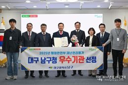 파이낸셜대구경북 김유신 기자 | 대구 남구는 행정안전부가 주관한 ’2025년도 재난관리평가‘에서 우수기관으로 선정되어 장관 표창과 특별교부세 1억 3000만원, 포상금 400만원을 지원받는다고 밝혔다. 재난관리평가는 ‘재난 및 안전관리 기본법‘에 따라 중앙·공공·지자체 총 338개 기관의 재난관리 역량을 진단하고, 책임성을 높이기 위해 매년 실시하고 있다. 공정하고 객관적인 평가를 위해 중앙재난관리평가단이 재난관리 단계별 필수 업무, 재난 유형별 관리 활동 등 38개 지표를 종합적으로 평가했다. 이번 평가에서 남구청은 재난관리기금 관리 실적, 취약계층 안전관리 강화 실적, 감염병재난 저감활동 실적, 민간 다중이용시설 위기관리 실적 등의 지표에서 우수한 평가를 받았다. 우수기관으로 선정된 남구는 장관 표창 및 특별교부세 1억 3천만원과 포상금 4백만원 등 재정적 혜택을 받을 예정으로 특별교부세는 재난 예방을 위한 신규 사업에 투자할 예정이다. 조재구 남구청장은 “구민의 생명과 안전을 지키는 것을 최우선으로 전 직원이 노력한 결과이며, 안전하고 활기찬 행복도시 명품 남구 만들기에 최선을 다하겠다.”라고