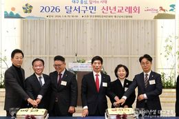 파이낸셜대구경북 김유신 기자 | 대구 달서구 민주평화통일자문회의 대구달서구협의회는 병오년 새해를 맞아 지난 8일 웨딩비엔나에서 ‘2026 달서구민 신년교례회’를 개최했다. 이번 신년교례회는 새해를 맞아 지역사회의 화합과 발전을 기원하고, 구민과 함께 새로운 도약의 의지를 다지기 위해 마련됐다. 행사에는 추광엽 민주평통 대구달서구협의회장을 비롯해 이태훈 달서구청장, 서민우 달서구의회 의장, 신철범 민주평통 대구부의장, 유영하·윤재옥·권영진 국회의원, 지역 시·구의원, 유관기관 및 단체장, 민주평통 자문위원, 구민 등 500여 명이 참석해 자리를 빛냈다. 행사는 식전공연을 시작으로 신년인사와 축사, 구민 화합을 다지는 ‘대구 백년, 달서가 품다’ 시루떡 절단, 건배제의 순으로 진행됐으며, 참석자들은 새해의 희망과 각오를 함께 나누는 뜻깊은 시간을 가졌다. 추광엽 민주평통 대구달서구협의회장은 “2026년 병오년 새해에도 지역사회 발전과 화합을 위해 모두가 한마음으로 새로운 각오를 다지며 희망찬 한 해를 열어가길 바란다”고 말했다. 이태훈 달서구청장은 “새해를 맞아 53만 구민 모두의 건강과