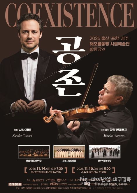 파이낸셜대구경북 기자 | 울산광역시가 주관하는 ‘2025 해오름동맹 시립예술단 합동공연 '공존(COEXISTENCE)'’이 11월 14일 울산문화예술회관 대공연장, 11월 15일 경주예술의전당 화랑홀에서 잇따라 열린다.