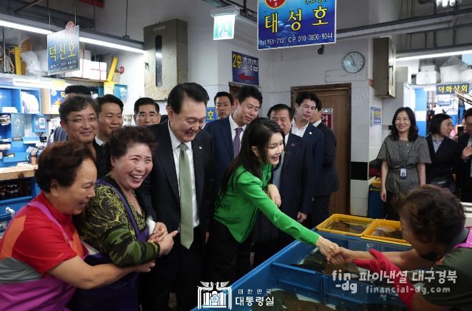 파이낸셜대구경북 김유신 기자 | 윤석열 대통령 부부는 9월 14일 부산 민락어민활어직판장을 방문해 수산물을 구입하고 상인들과 소통의 시간을 가졌다.