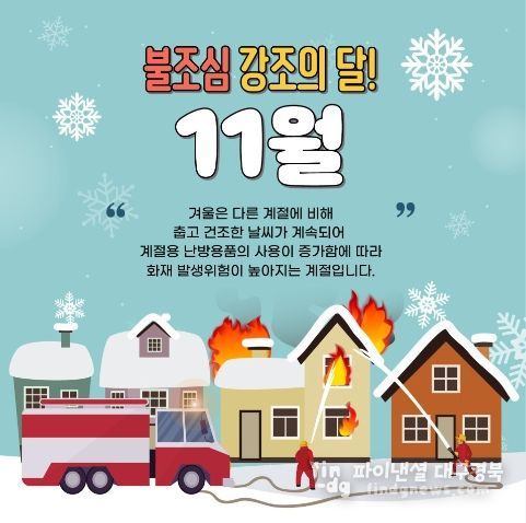 전우현 김천소방서장은“사소한 부주의로 인한 난방용품 화재 빈도가 증가하고 있다”며“겨울철 3대 난방용품의 올바른 사용과 관리 방법으로 안전한 겨울이 되길 당부드린다”고 말했다.