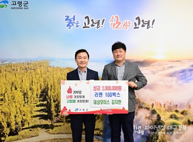 파이낸셜대구경북 강대산 기자 | 대가야읍에 위치한 대성모터스에서 3월 6일 고령군청을 방문하여 '함께모아 행복금고'성금 200만원과 라면 100박스를 기탁했다.