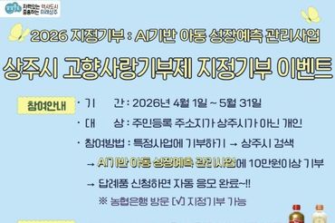 2026 상주시 고향사랑기부제 지정기부 이벤트 실시