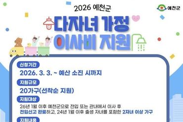 예천군, 다자녀 가정 이사비 및 농수산물 쿠폰 지원사업 추진
