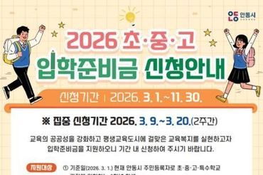 안동시, 2026년 신입생 입학준비금 지원
