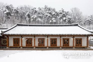 칠곡군 봄꽃 대신 눈꽃 핀 향사아트센터, 24일 저녁까지 설경