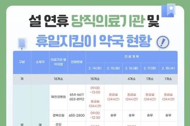 예천군, 설 연휴 당직 의료기관 및 휴일 지킴이 약국 운영