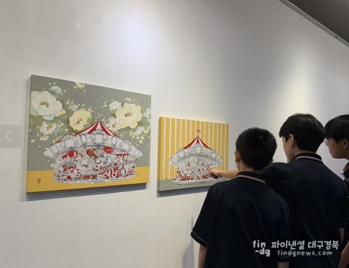 주요 전시작으로 ▲대구동부초등학교 최진선 교사의 평면 작품 ‘해피 메리고라운드(Happy merry-go-round)’는 일상 속 사람들과 함께한 행복한 순간을 회전목마에 담아 희망의 메시지를 전한다.