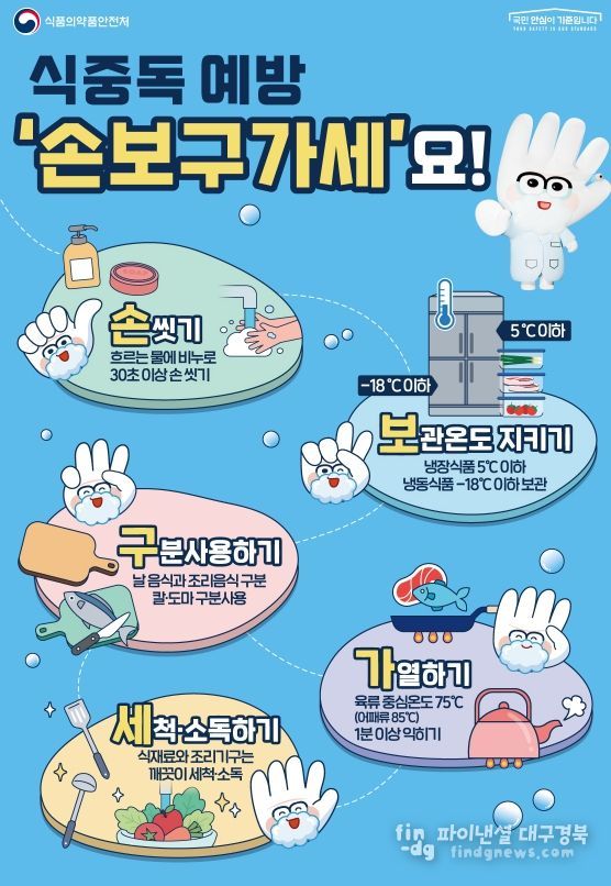 김호섭 경북도 복지건강국장은 “명절에는 다양한 음식을 준비하고 오랜 시간 함께 나누어 먹는 만큼 작은 부주의도 큰 사고로 이어질 수 있다”며 “손 씻기와 올바른 조리·보관 수칙을 철저히 지켜 도민 모두가 식중독 없는 안전하고 건강한 명절을 보내시길 바란다”고 말했다.