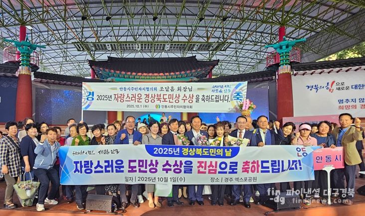 파이낸셜대구경북 기자 | 안동시는 10월 1일 경주엑스포공원 백결공연장에서 열린 ‘2025년 경상북도민의 날’ 기념식에서, 안동시민 3명이 ‘자랑스러운 도민상’을 수상했다고 밝혔다.