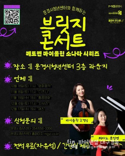 파이낸셜대구경북 기자 | 문경시청년센터는 오는 10월부터 12월까지 문경시청년센터 3층 라운지에서 클래식을 주제로 한‘브릿지 콘서트’를 연다.