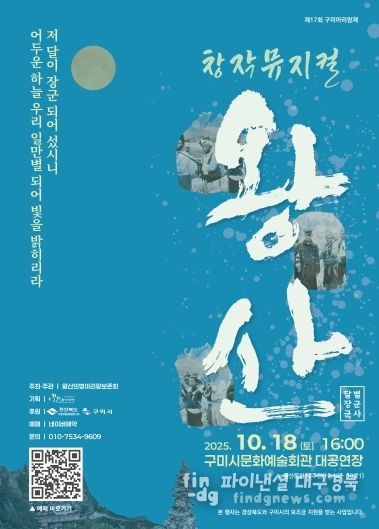 파이낸셜대구경북 기자 | 구미시는 ‘2025 제17회 구미아리랑제 창작뮤지컬 왕산’을 10월 18일 오후 4시 구미문화예술회관 대공연장에서 개최한다. 경상북도와 구미시가 후원하는 이번 공연은 구미 출신 독립운동가 왕산 허위 선생의 일대기를 뮤지컬과 영남 지역 민요로 풀어내며, 당시 백성들의 항일정신과 민족의지를 생생하게 전할 예정이다.