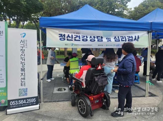 파이낸셜대구경북 김유신 기자 | 대구 서구보건소는 세계 정신건강의 날(10월 10일)을 기념해 10월 15일 평리공원에서 정신건강 인식 개선을 위한 ‘서구 연합 정신건강 캠페인’을 진행했다.