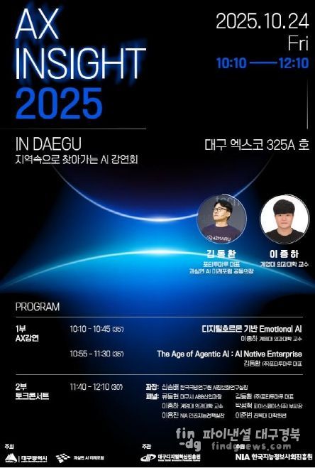 파이낸셜대구경북 김유신 기자 | 대구광역시는 (사)과실연 AI미래포럼과 함께 10월 24일(금) 대구 엑스코에서 ‘AX·Security Insight 2025 In Daegu’를 개최한다.