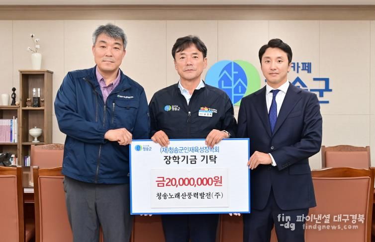 청송노래산풍력발전(주)은 2021년부터 매년 2천만 원씩, 5년간 총 1억 원의 장학금을 기탁하며 기업이윤의 사회 환원이라는 사회적 책임을 지속적으로 실천해 오고 있다.