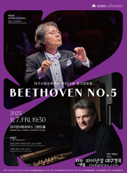 대구시향 ‘제520회 정기연주회 : 베토벤 No.5’는 일반 R석 3만 원, S석 1만 6천 원, H석 1만 원으로, 대구콘서트하우스 누리집, 놀티켓에서 예매할 수 있다.