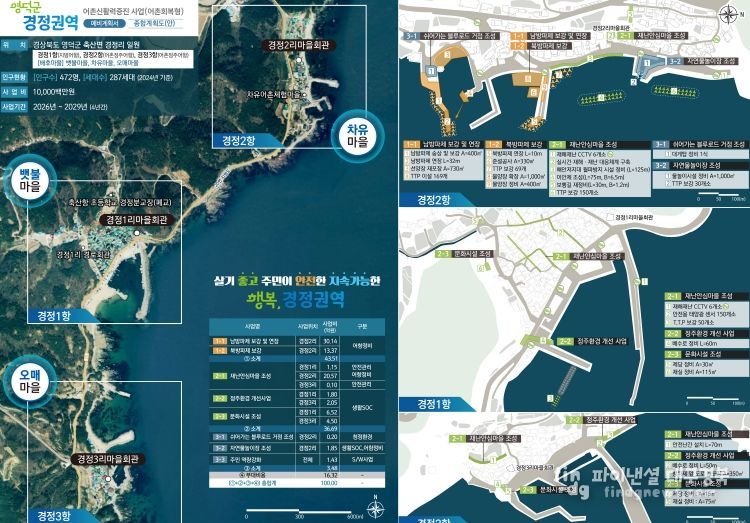 파이낸셜대구경북 김유신 기자 | 영덕군이 해양수산부가 주관하는 ‘2026년 어촌신활력증진사업’ 공모에 최종 선정됨에 따라 축산면 경정1·2·3항 일대에 100억 원 규모의 사업이 추진된다.