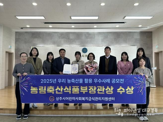 파이낸셜대구경북 기자 | 상주시 어린이‧사회복지 급식관리지원센터가 지난 11월 6일 대한영양사협회가 주관한 '2025년 우리 농‧축산물 활용 우수사례 공모전'에서 농림축산식품부장관상을 수상했다.