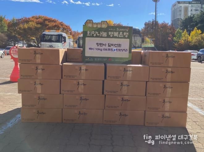 김대권 수성구청장은 “관내 어려운 이웃을 위해 따뜻한 마음을 모아주신 데 깊이 감사드린다”며 “전달해주신 물품은 도움이 필요한 가정과 아동들에게 소중히 전달하겠다”고 말했다.