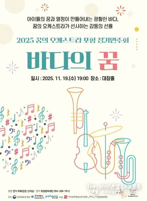 이번 공연은 포항 지역 아동·청소년으로 구성된 오케스트라 단원들이 1년 간의 음악적 성장을 무대 위에서 시민들과 나누는 뜻깊은 자리로, 그동안 쌓아온 실력을 생생한 합주로 선보일 예정이다.