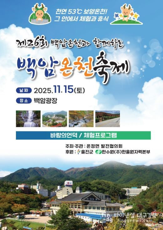 파이낸셜대구경북 기자 | 울진군은 11월 15일 울진군 온정면 백암광장 일원에서 ‘제26회 백암온천축제’를 개최한다.