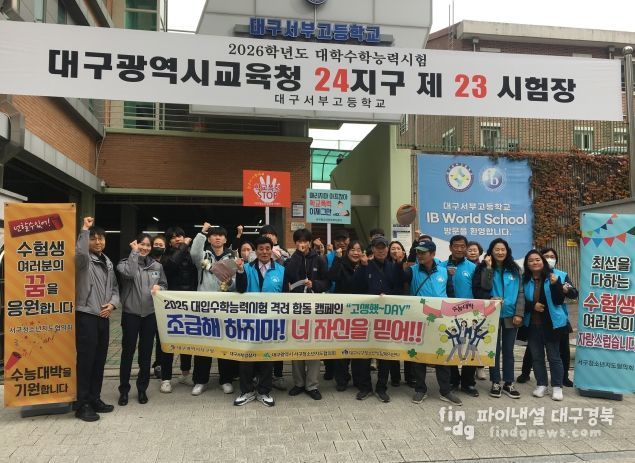 파이낸셜대구경북 김유신 기자 | 대구 서구 청소년지도협의회(회장 황만태)는 지난 12일, 서부고등학교 정문에서 학생들의 수능 예비 소집일 시간에 맞춰 수험생 응원 및 선도·보호 합동 캠페인을 실시했다.