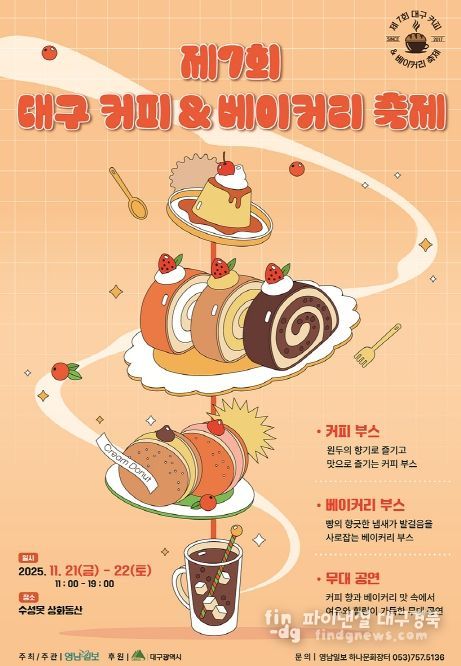 파이낸셜대구경북 김유신 기자 | 대구광역시는 11월 21부터 11월 22까지 양일간 수성못 상화동산에서 ‘제7회 대구 커피·베이커리 축제’를 개최한다.