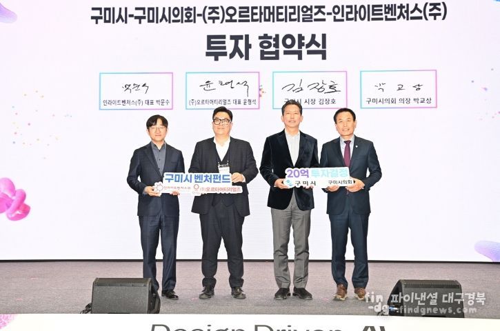 김장호 구미시장은 “오늘 행사는 구미시 벤처펀드가 또 하나의 결실을 맺은 뜻깊은 자리”라며 “앞으로도 구미시는 유망 스타트업에 지속적으로 투자하여 이들 기업이 지역 발전에 기여하는 선순환 구조를 만들 수 있도록 아낌없는 지원을 이어가겠다”고 강조했다.
